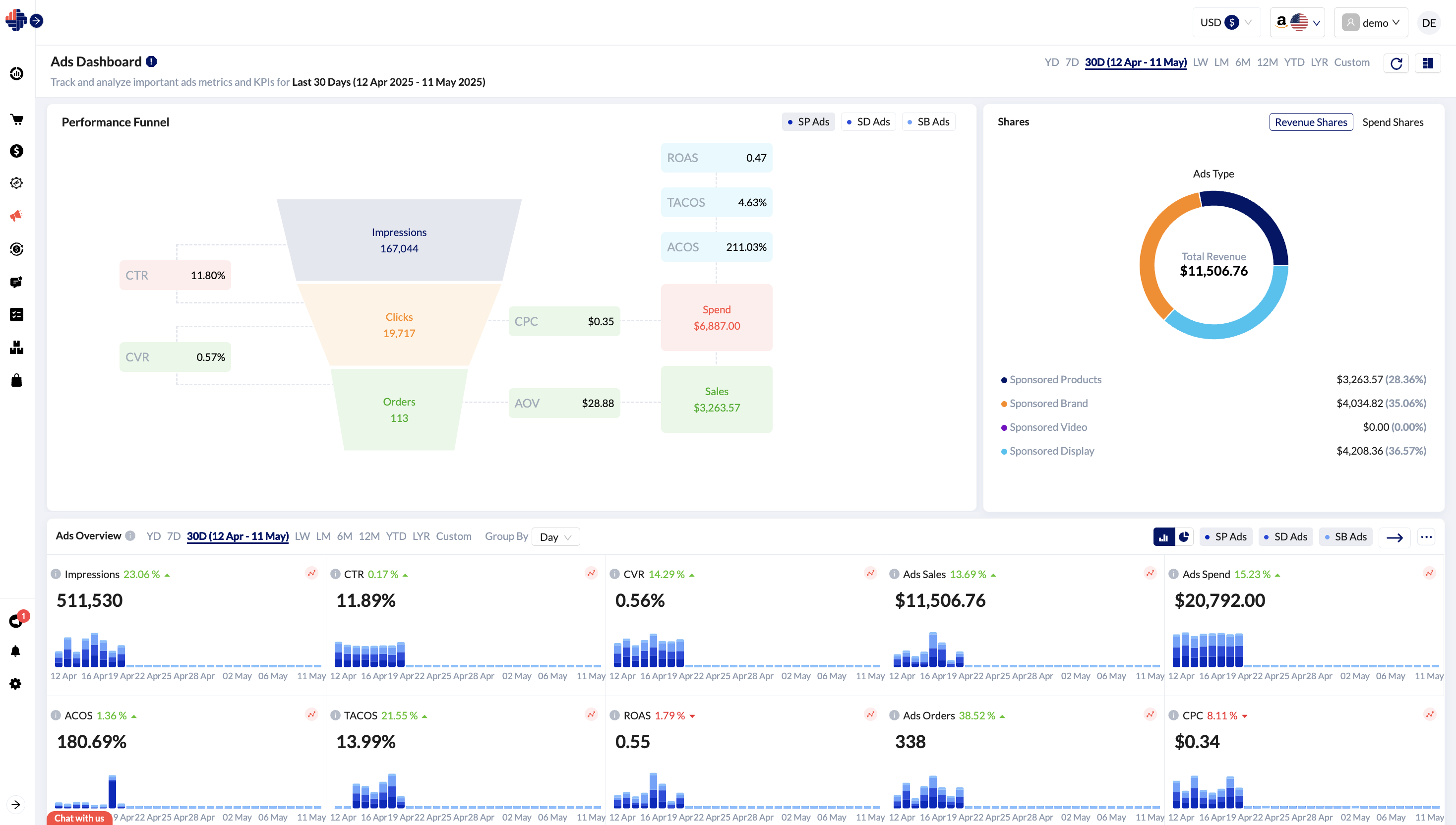 Businesses struggle to manage and optimize eCommerce advertising across multiple platforms such as Amazon, Google, Facebook, and Instagram, resulting in fragmented campaigns and inefficient ad spending.